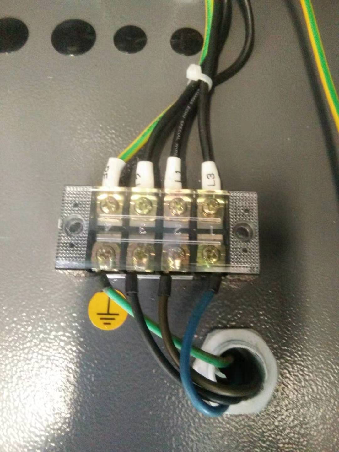 2、數(shù)控機(jī)床的通電:機(jī)床一般使用三根動(dòng)力線380V,一根接地保護(hù)線,要注意電纜線的平方數(shù),在機(jī)床說(shuō)明書(shū)的線路圖中都有明確標(biāo)注。例:CAK6130h要求單根2.5平方毫米,電壓380V±10%,如果電壓太低將會(huì)導(dǎo)致主軸旋轉(zhuǎn)不穩(wěn)定。